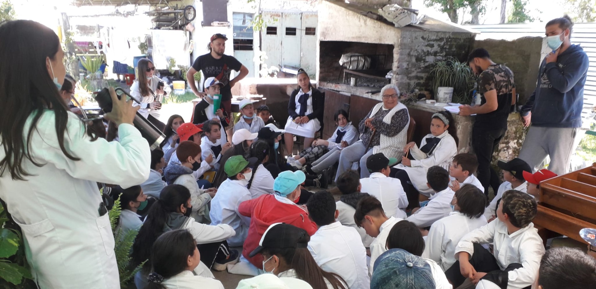 75 alumnos y alumnas de la escuela 157 de Villa García fueron a conocer a la "abuela Ana", una productora rural local instalada en el barrio desde 1950. Desde los 5 o 6 años, Ana era rápida para plantar y llevar los bueyes, en Batovi (Tacuarembó). "Iba a la escuela en caballo..." recuerda Ana.