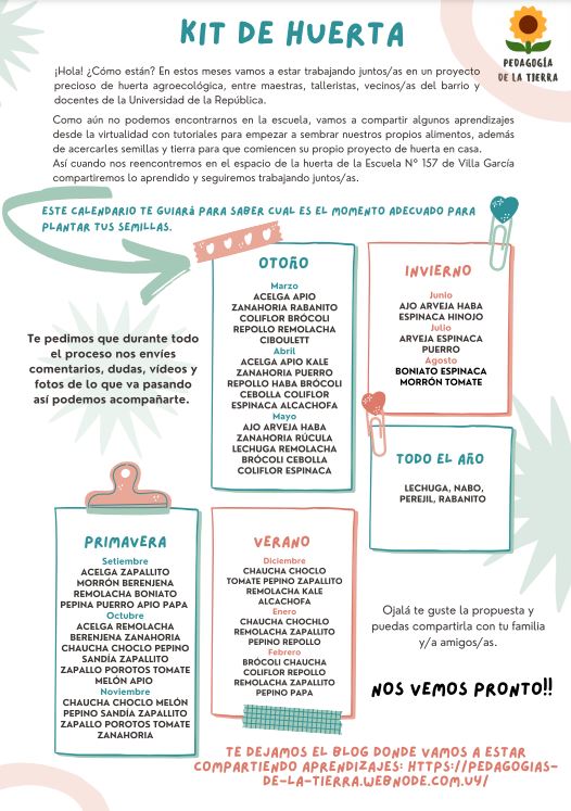 En estos meses vamos a estar trabajando juntos/as en un proyecto precioso de huerta agroecológica, entre maestras, talleristas, vecinos/as del barrio y docentes de la Universidad de la República.